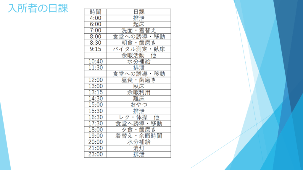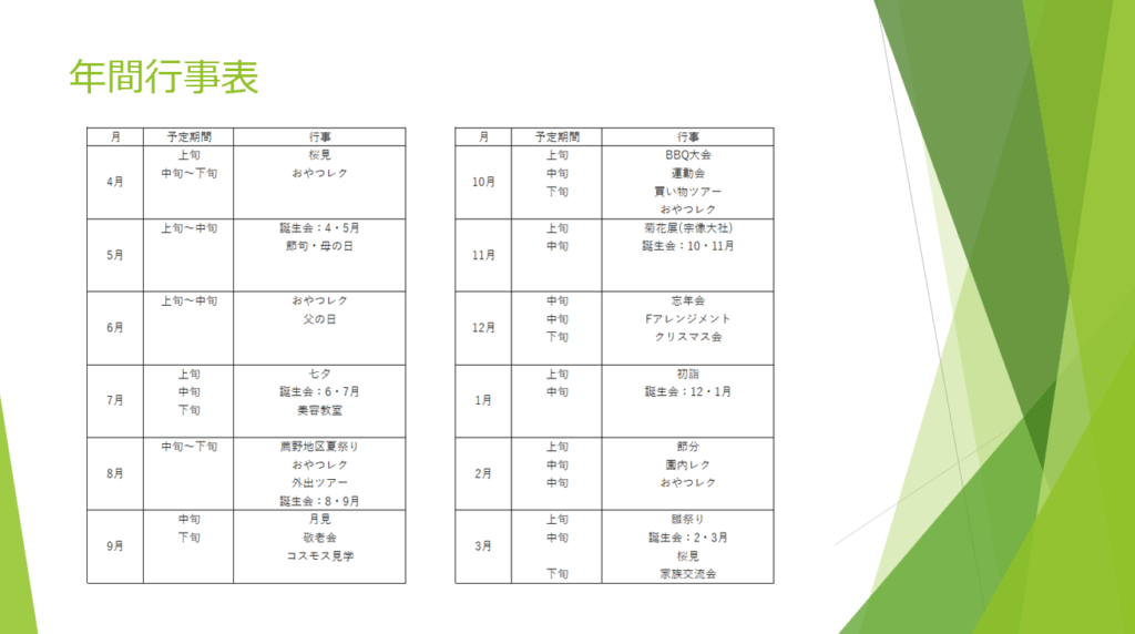 📅入所者の日課、年間行事表